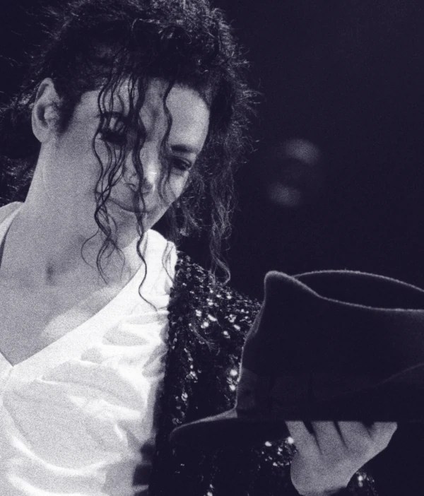 Von Weitem sieht Michael eigentlich in seinen patenten Lederschuhen wie ein Bühnen-Dandy aus. Es ist nur eine theatralische Show, die er aufzieht, um einen bestimmten Effekt zu erzielen. Er trägt keine Gangster-Gamaschen, sondern schwarze Loafer und weiße Socken; die schwarze Jacke verbirgt ein T-Shirt, das er jeden Augenblick von oben bis unten aufreißen würde; und der elegante Fedora verdeckt zerzaustes Haar, das mit der Brillantine sorgfältig frisierter Tänzer der Vergangenheit nichts gemein hat. Er braucht diesen Look nur, um ins Spot-Light zu treten. Das Spot-Light ist ein theatralisches Mittel, so alt wie die Welt – wir alle benutzen es – und Michael war nicht der Erste, der es erschuf. Er übernahm es von Klassikern. Licht und Schatten der Kontraste erzeugenden Beleuchtung akzentuieren einen weißen Handschuh oder weißes Tape an seinen Fingerspitzen – und das erste faszinierende Element eines Mysteriums erklingt. Ein aus der Dunkelheit tretender Kavalier in Schwarz gekleidet – ein für die Ladys schon seit der Zeit der Mantel-und-Degen-Filmkomödien verführerischer Archetypus. Eine Frau kann sein Gesicht nicht sehen, aber träumt schon von ihm als ihrem romantischen, heimlichen Liebhaber, der sie mitten in der Nacht besucht und in ihr Fenster einsteigt. Der Hut ist deshalb so weit herunter geschoben, um seine Augen zu verdecken.